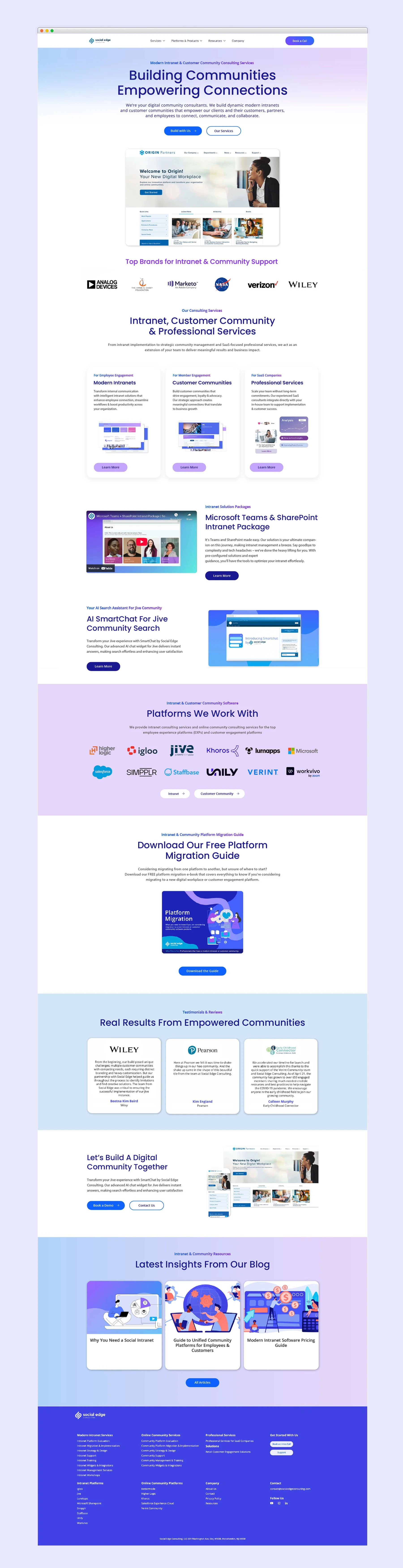 Social Edge Consulting is a digital consulting firm founded in 2012 that specializes in designing, building, and optimizing modern intranets and online customer communities. They aim to empower organizations by transforming internal communication and building customer communities through platforms like LumApps, Igloo, Microsoft SharePoint and Verint. Their services include intranet consulting, community management, and professional services tailored for SaaS companies.